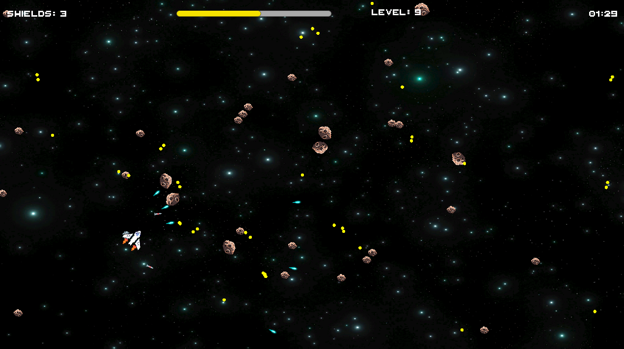 See how long you can survive in an asteroid field. You control a ship with inertia based movement, scavenge for upgrades from destroyed asteroids, and try to survive an escalating number of asteroids.